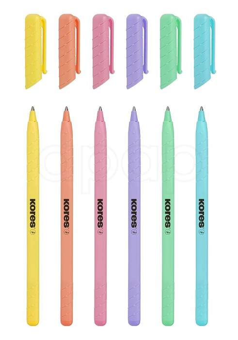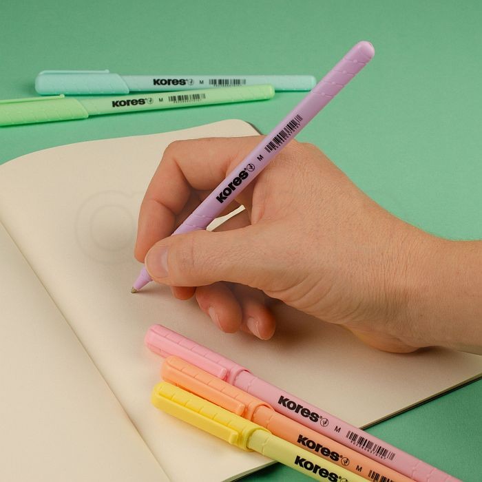 Kores K1. Jednorázová kuličková tužka s transparetním tělem, trojhranného ergonomického tvaru. Barva těla odpovídá barvě náplně. Šíře stopy F-0.5mm. Barva černá.
