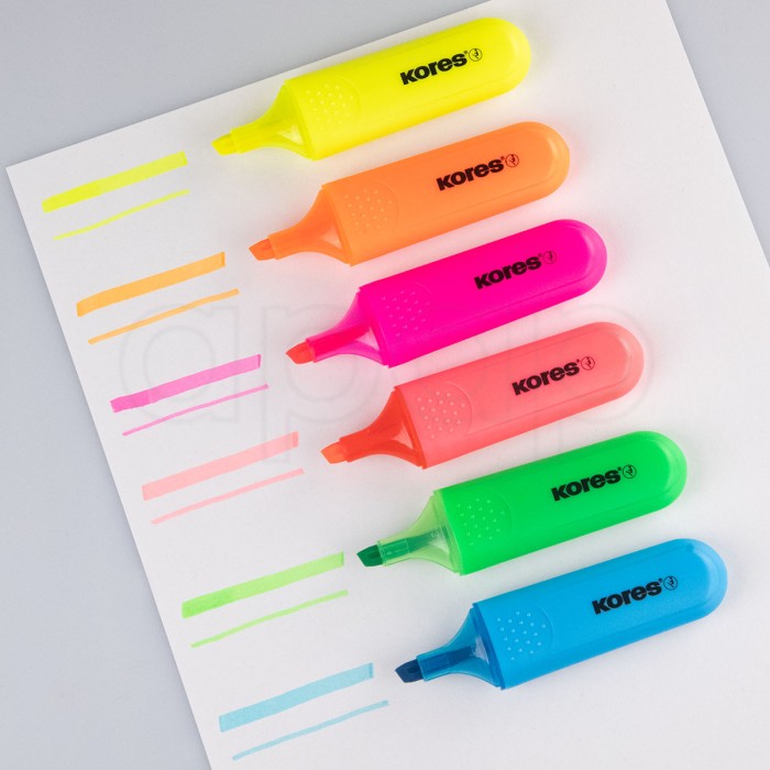 Zvýrazňovač vysoké kvality se seříznutým hrotem. Ergonomický tvar s úchopovou zónou s s klipem na víčku. Univerzální inkoust na vodní bázi vhodný pro všechny druhy papíru. Vydrží bez víčka až několik dní. Jasné a syté barvy se zářivým leskem.