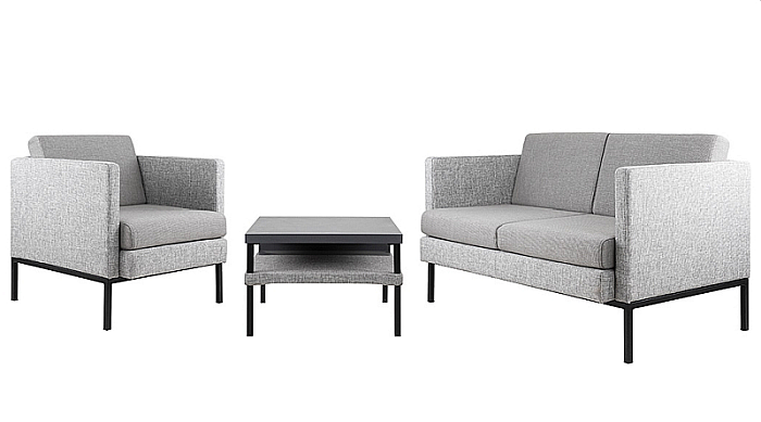 Dvoumístné celočalouněné sofa pro komerční a bytové prostory.